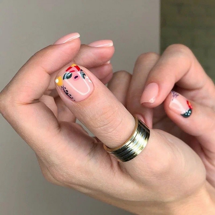 Які малюнки актуальні у мінімалістичному дизайні 2022-2023? Чудово виглядає флористика та графіка, абстракція та орнаменти, квіти та прості цятки з лініями, які у тандемі дозволяють отримати шалено стильний мінімалістичний нейл-арт.