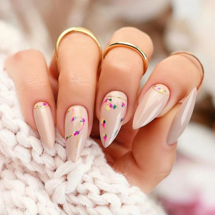 Відтінки нюд є фаворитами в дизайні манікюру, являючи собою стильні варіанти оформлення, як довгих, так і коротких нігтів, квадратної або мигдальної форми. На додаток до нюдових відтінків можна використовувати перекладну фольгу, блискучі смужки або трохи яскравих фарб у милих малюнках.