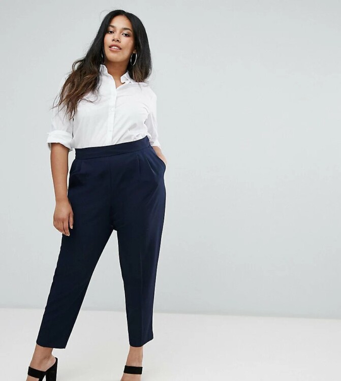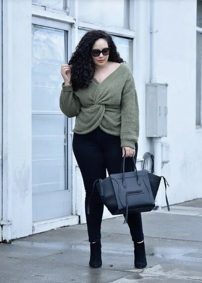 Жінкам з об’ємними формами рекомендується придивитися до штанів прямого крою, доповненим вилогами, обтягуючих легінсам темного забарвлення, якщо носити їх з подовженим кардиганом і моделями 7/8.