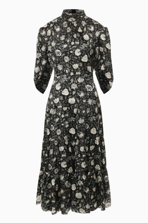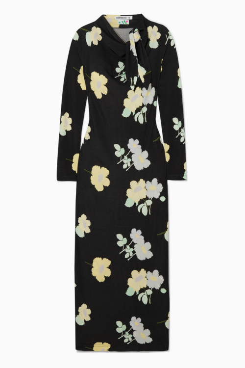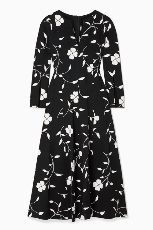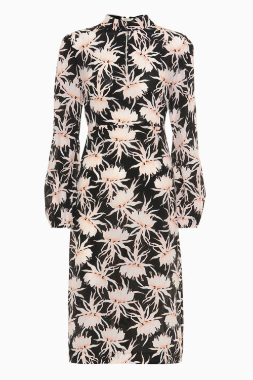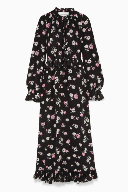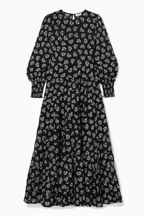Схожі квіткові сукні з довгими рукавами, як в Амаль Клуні, можна знайти в колекціях Chloé, Oscar de la Renta, Isabel Marant та інших брендів. Найкрасивіші варіанти ми вже знайшли. Вам залишиться лише визначитися з розміром квітів на тканині.
