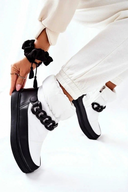 Додати пікантності та родзинки сучасним зимовим черевикам стилістам вдалося за допомогою ланцюгів, які ефектно розташовуються в області п’яти.