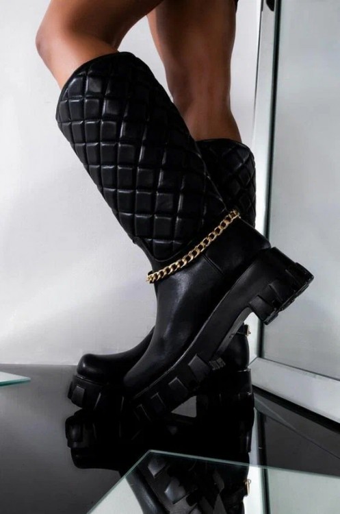 Дуте та стьобане взуття цього сезону стилісти також вирішили прикрасити ланцюгами різного розміру. Тепер навіть за дощової чи морозної погоди кожна з нас може виглядати гламурно.