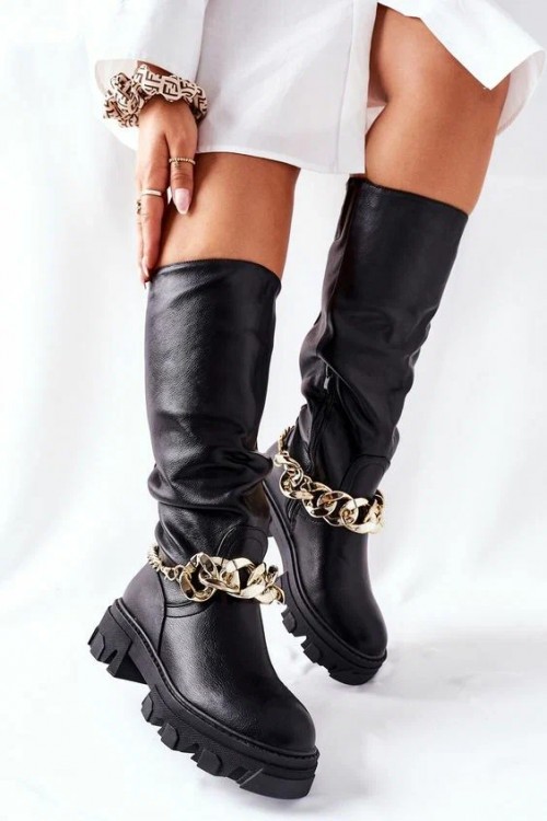 Зверніть увагу на високі чоботи із золотим масивним ланцюгом на щиколотці.