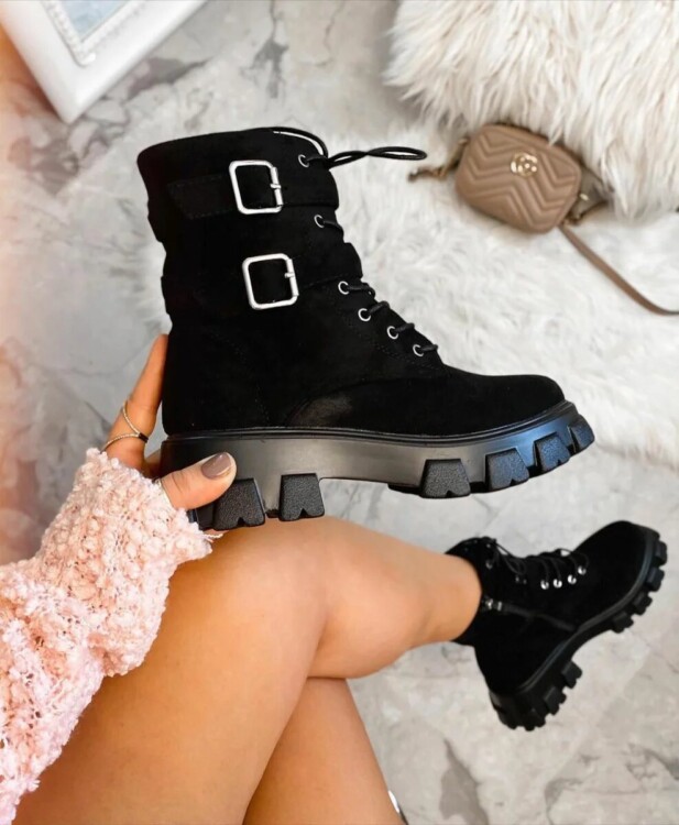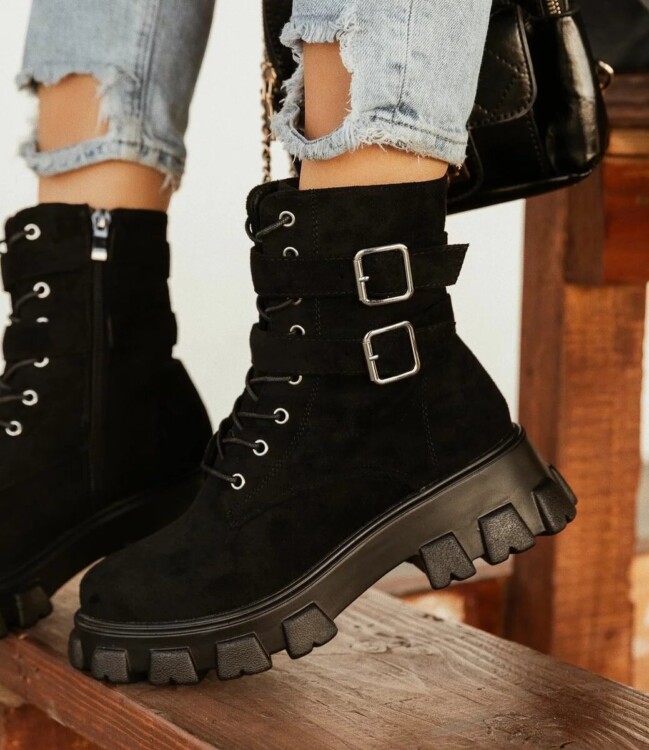 Наступний тренд зимового взуття – це масивні черевики на шнурівці виконані, як з натуральної шкіри, так і замші. Завдяки шнурівці в даній моделі жіночі ніжки виглядають максимально витончено, незважаючи на масивну і громіздку підошву. Також крім шнурівки актуальними в новому сезоні будуть черевики, прикрашені безліччю тонких ремінців з контрастною фурнітурою.