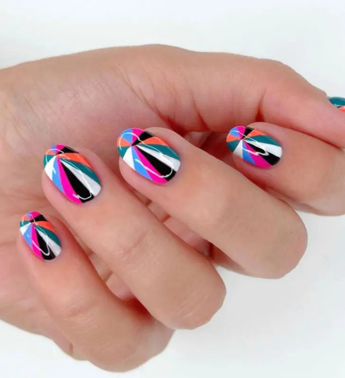 Ці неонові контрастні кольори роблять цей простий манікюр таким, що дійсно виділяється та одразу впадає в очі.