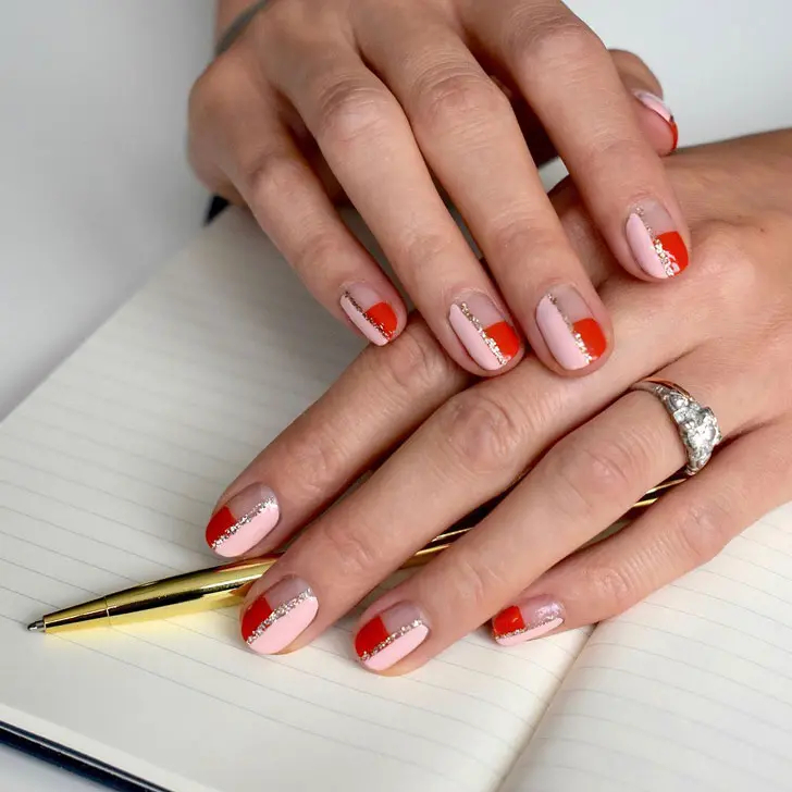 Цей манікюр, що привертає увагу, виглядає набагато стильніше з червоним відтінком лаку.