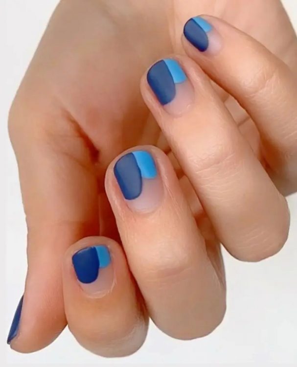Прохолодний синій колір завжди виглядає по-королівськи. А використання матового лаку його лише покращує.