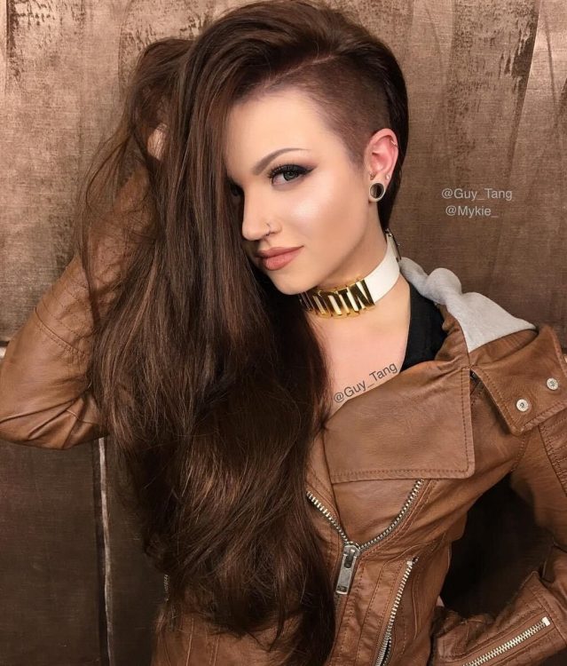 - на середнє волосся – маллет, вовчиця, каскад, каре, боб-каре, поголені скроні;