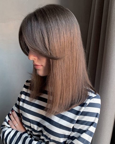 Ось тут доречно сказати «той самий», адже цей чубчик ви точно бачили на просторах Інтернету. Схоже, це вже знак ризикнути та зробити його! Такий чубчик не виглядає нав’язливо. До того ж його завжди можна прибрати за допомогою невидимок або шпильок. Зате укладання з ним буде виглядати дуже об’ємним і крутим.
