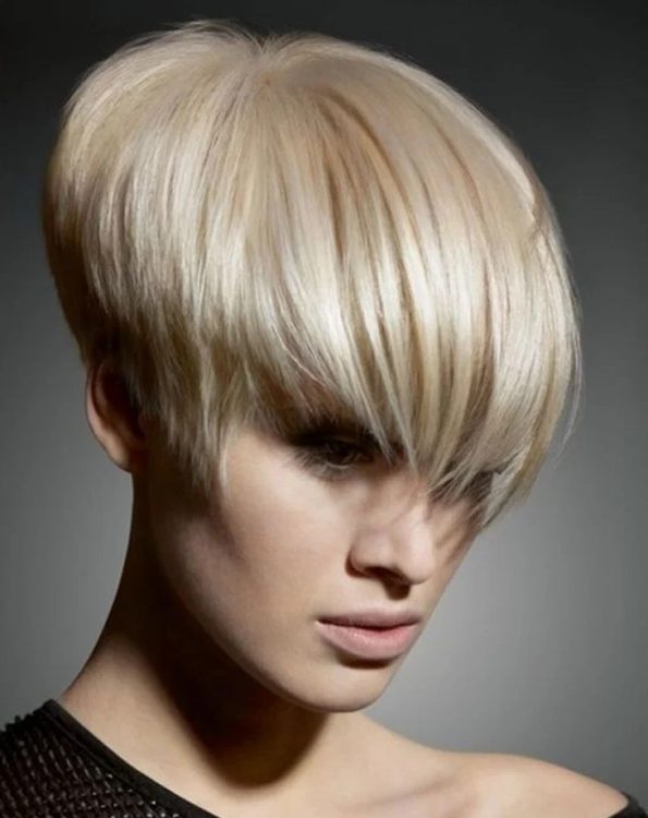 У цій зачісці об’ємна верхівка, за рахунок чого волосся виглядає густішим. Вона рекомендується жінкам з тонкими локонами.
