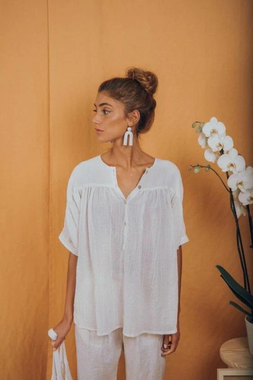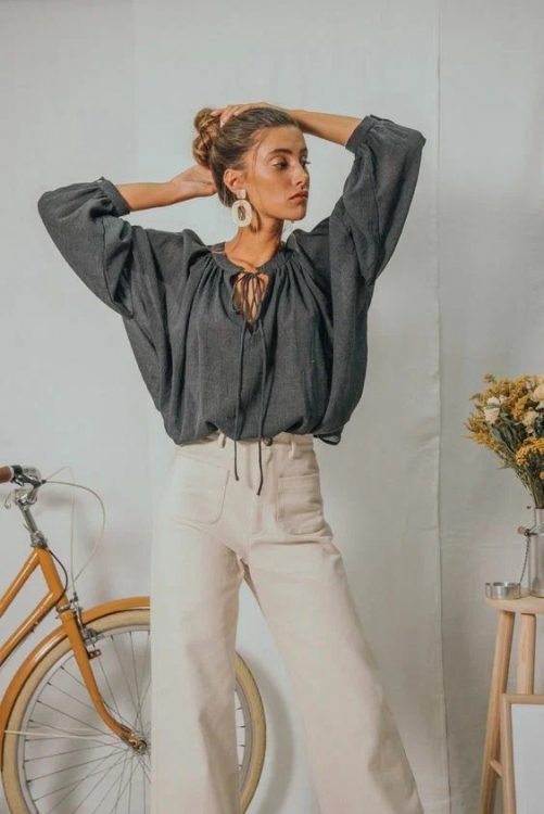 У спеку ідеальним варіантом для красунь різних вікових категорій стане об’ємна блузка зі 100% льону. Натуральна тканина стане чудовим порятунком від палючого сонця та спеки. Чудовою ідеєю стане комбінація блузки з натурального матеріалу із лляними штанами. Ось у такому костюмі ви почуватиметеся максимально комфортно, затишно та стильно влітку 2022 року.