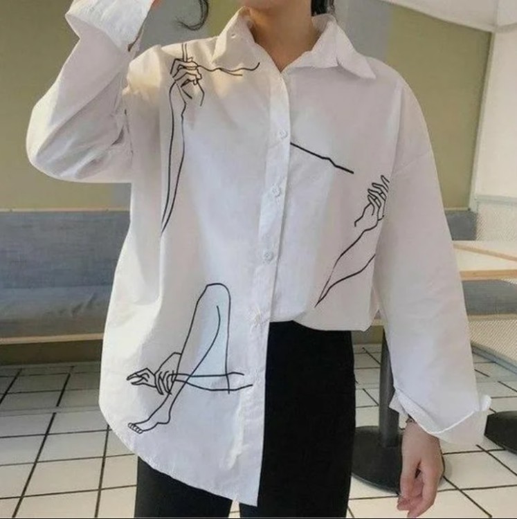 Асиметрично заправлена світла блуза з трендового абстракцією – це ідеальна річ, яка допоможе змінити на краще і прикрасити собою будь-який повсякденний нудний і однотонний look.