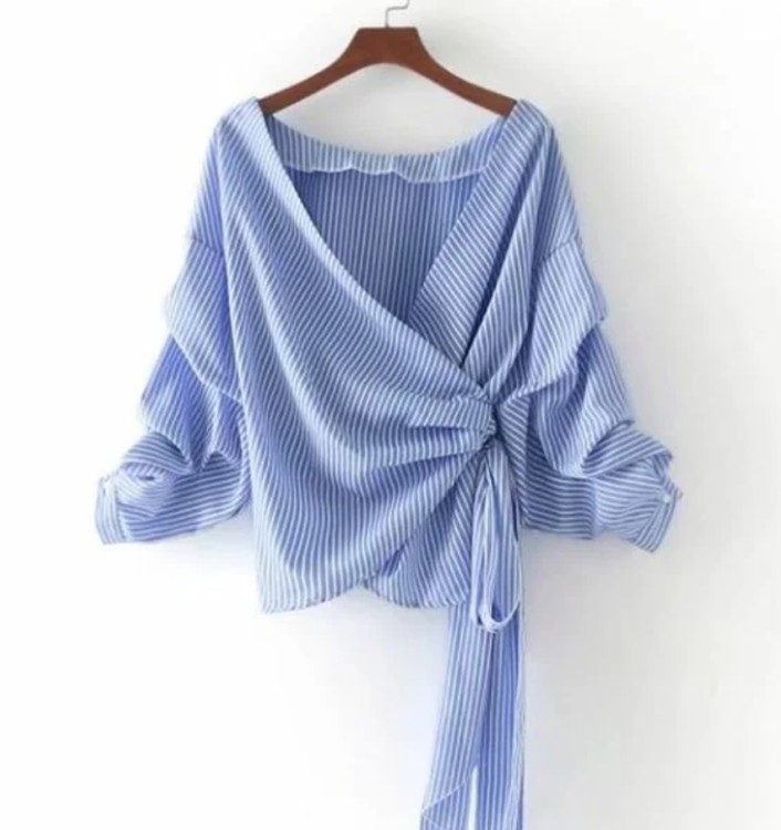 Трендові моделі блуз з асиметричним кроєм, нетривіальним вирізом на грудях, акцентом на талії і актуальним забарвленням і принтом можна сміливо поєднувати в своїх повсякденних образах з класичними брюками.