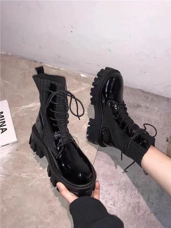 Черевики-панчохи з лакованими вставками також варті вашої уваги цього сезону.