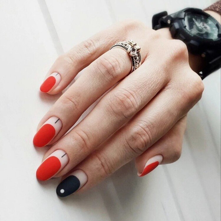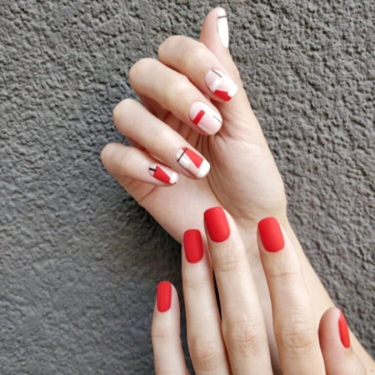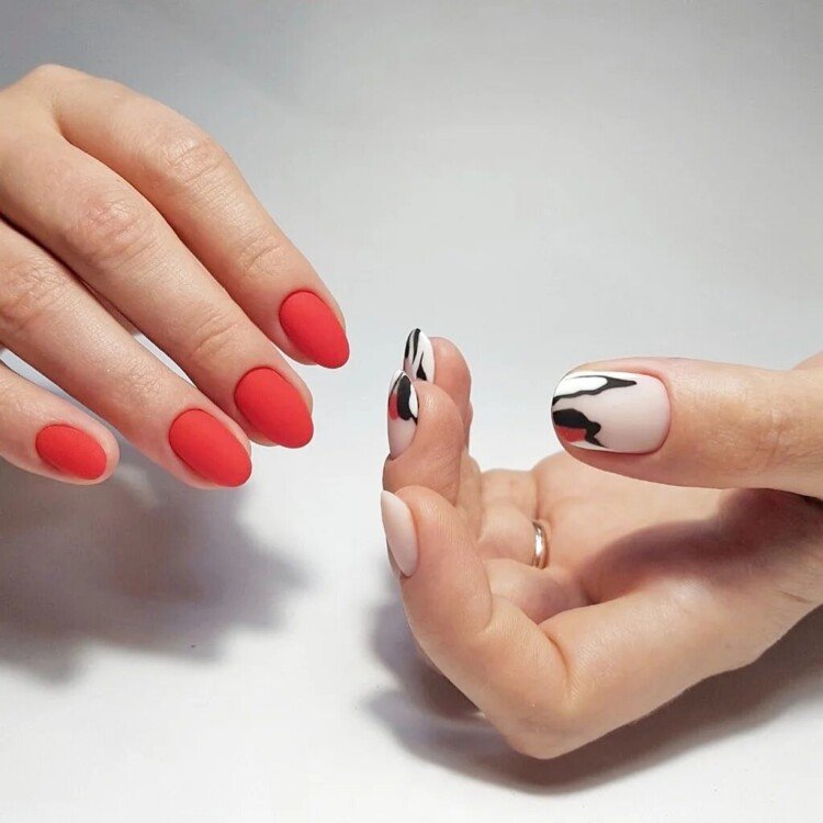 Використовуйте комбінації матових і глянсових текстур, грайте на контрастах, додаючи до червоного відтінку чорний і білий, створюйте неповторні і чарівні червоні нігті в наймоднішому виконанні 2021!