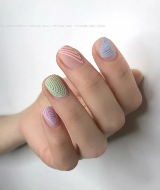 Такий дизайн виконується за допомогою техніки стемпинг або готових слайдеров. Модним напрямком стали дугоподібні чіткі лінії: