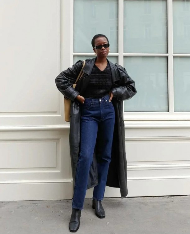 Темні кольори та відтінок індиго – одні з найпопулярніших серед головних модниць. Перевага цього тренду в тому, що він має бездоганний вигляд. Ви легко зможете доповнити цю ідеальну пару будь-якими речами, які є у вашому гардеробі.
