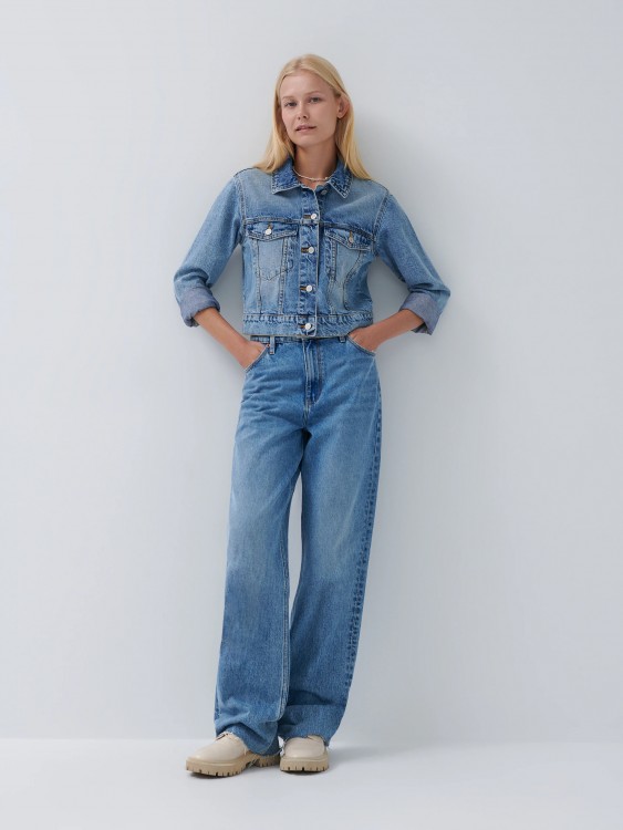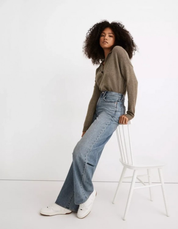 Джинси з широкими штанинами нікуди не дінуться у цьому сезоні. Поєднуйте їх з приталеним верхом і ви точно не помилитеся.