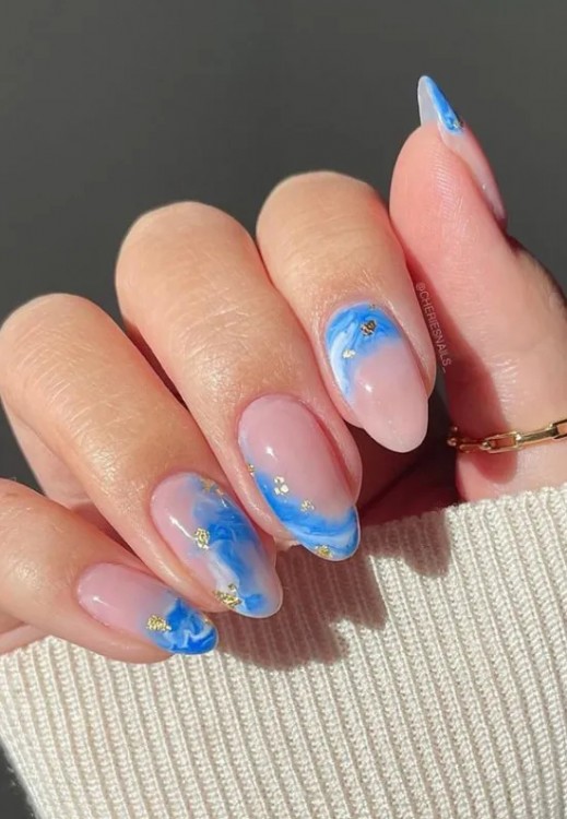 Блакитний морський манікюр з блискітками