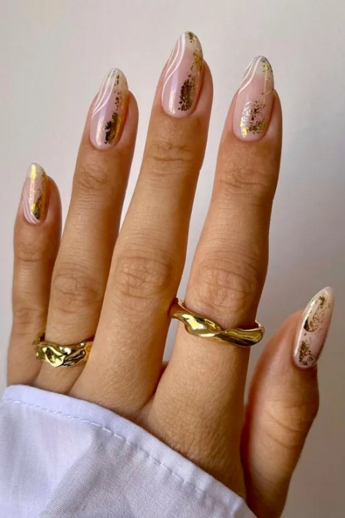 Білий із золотими пластівцями