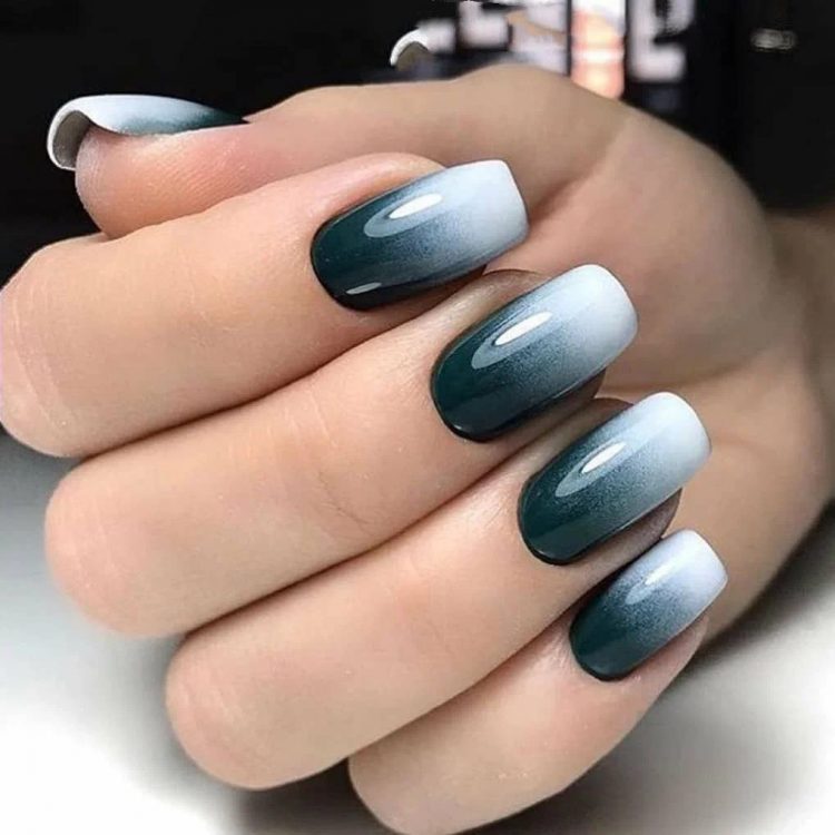 Техніка градієнт передбачає плавний перехід одного відтінку до іншого. Спробуйте використати елегантну чорно-білу палітру. Перевага такої контрастної комбінації полягає в тому, що вона візуально надає нігтям додаткової довжини. Можна додати третій лак-компаньйон сірого кольору, щоб перехід вийшов більш розмитим.