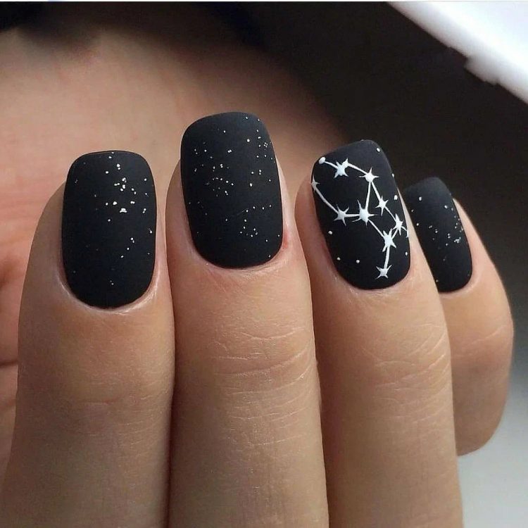 Зоряне небо завжди заворожує своєю красою. Чому б не відтворити його на нігтях? Це досить стриманий дизайн, але від цього нейл-арт, що не втрачає ефектності. Він підійде для будь-якої нагоди і відмінно поєднується з будь-яким образом.