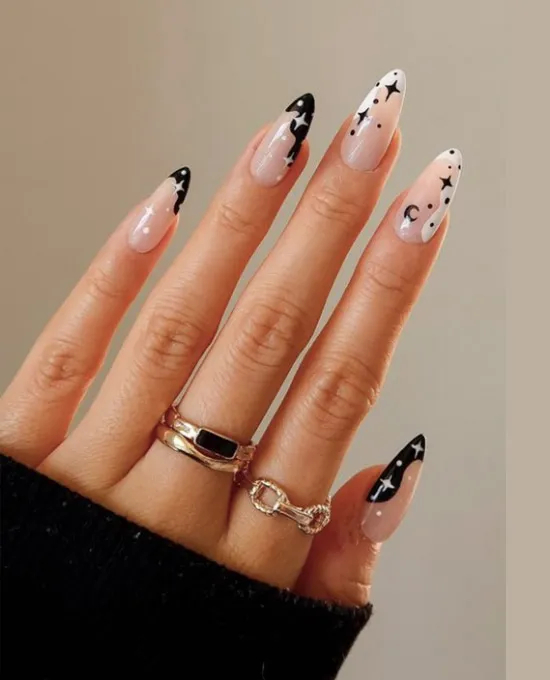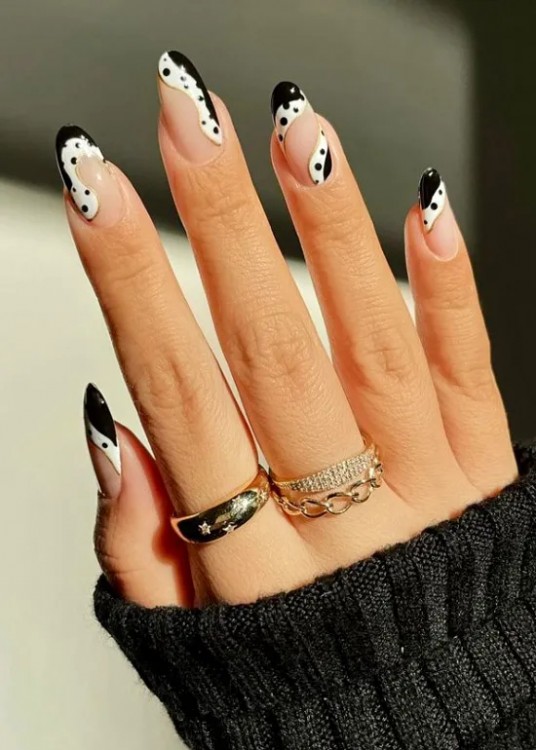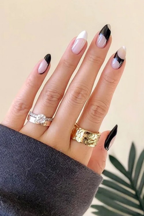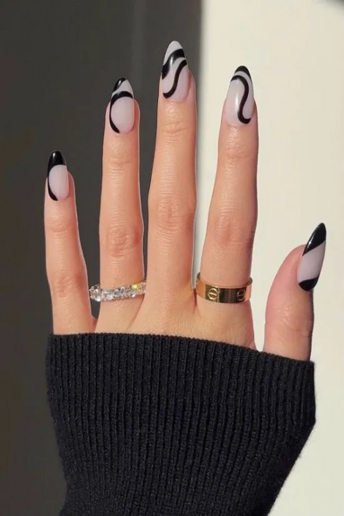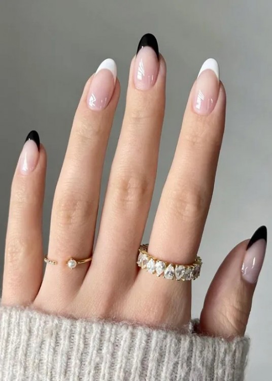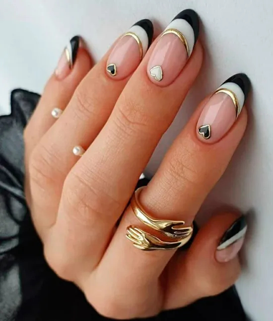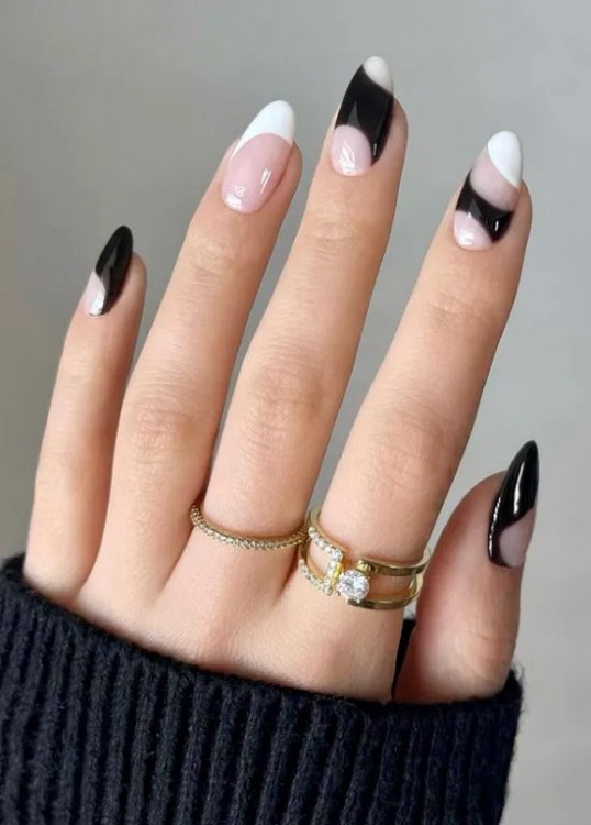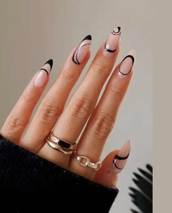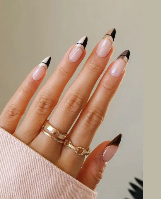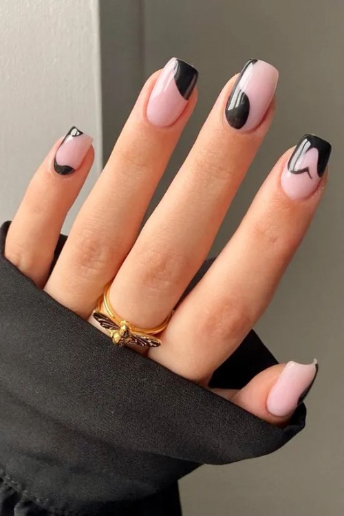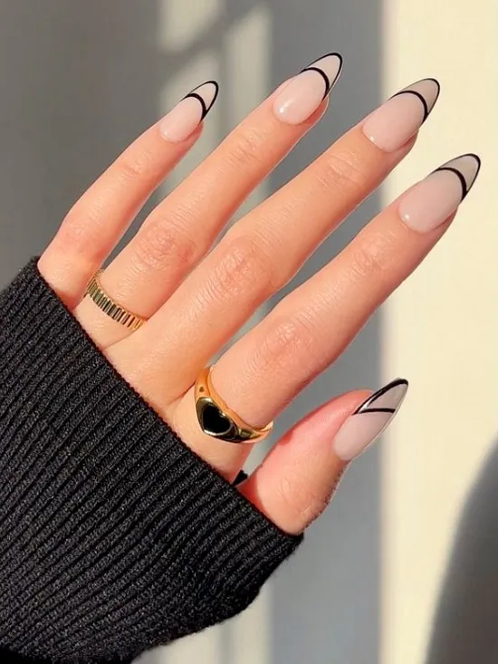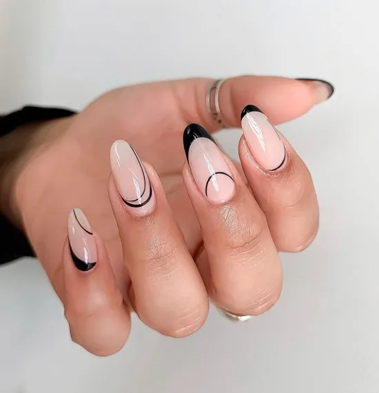 Чорний французький манікюр може бути будь-яким, від класичного дизайну з чорними кінчиками до чорно-білого нейл-арту, модних завитків, монохромного дизайну нігтів або негативного простору – ви вирішуєте, що підходить вашому стилю!