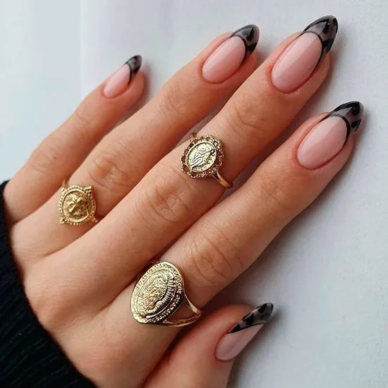 Французький манікюр зараз дуже популярний, чому б не виконати його в чорному кольорі? Прийшов час спробувати щось нове і, якщо ви хочете чогось іншого, крім класичних білих французьких нігтів, то чорний може бути для вас цікавим варіантом!