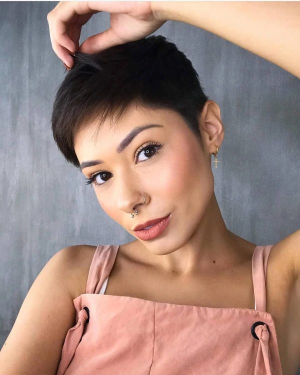Ультракоротке піксі — стрижка для стильної та ризикованої жінки, яка завжди «ЗА» кардинальні зміни. Щоб спробувати цей варіант стрижки, необов’язково мати густе волосся, вона ефектно виглядає навіть на тонких локонах.