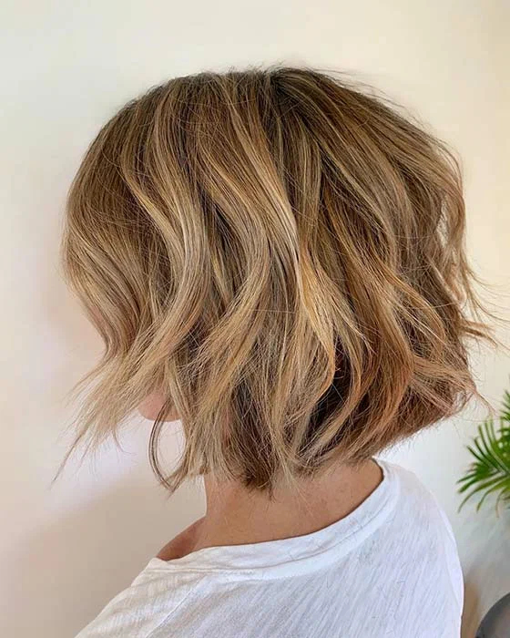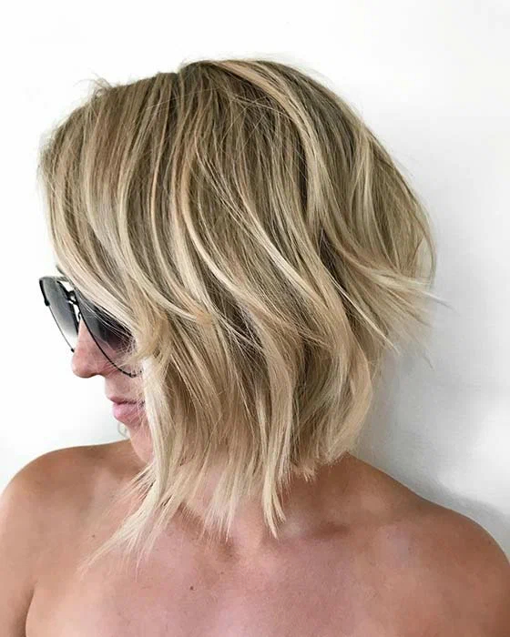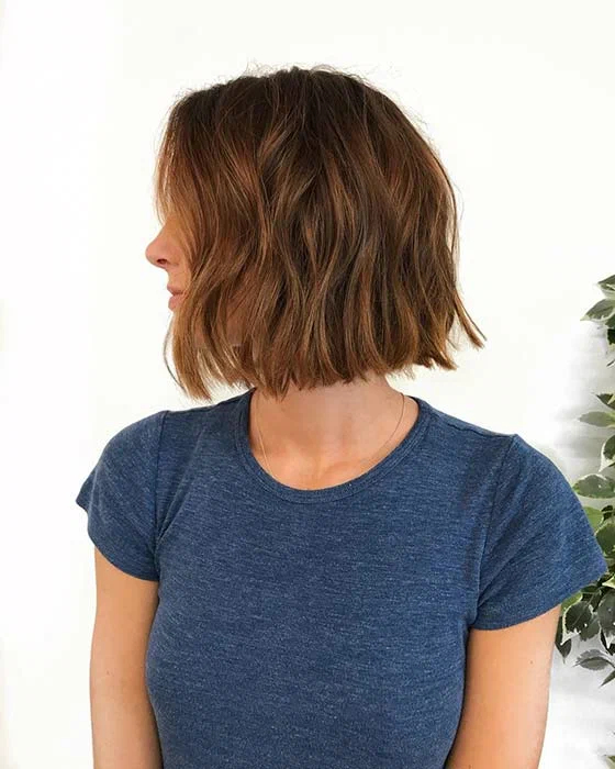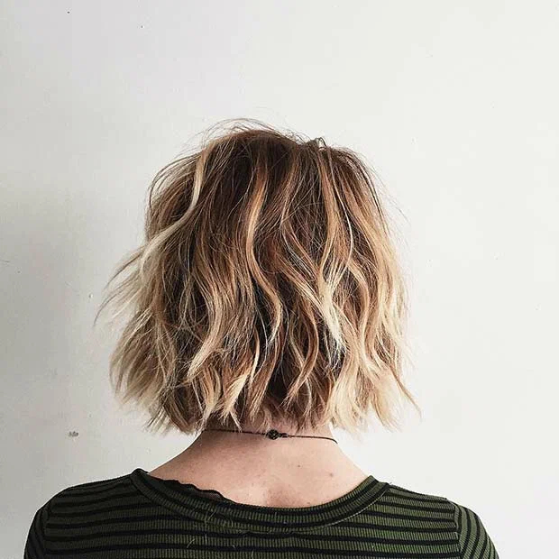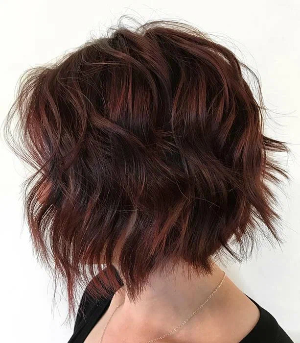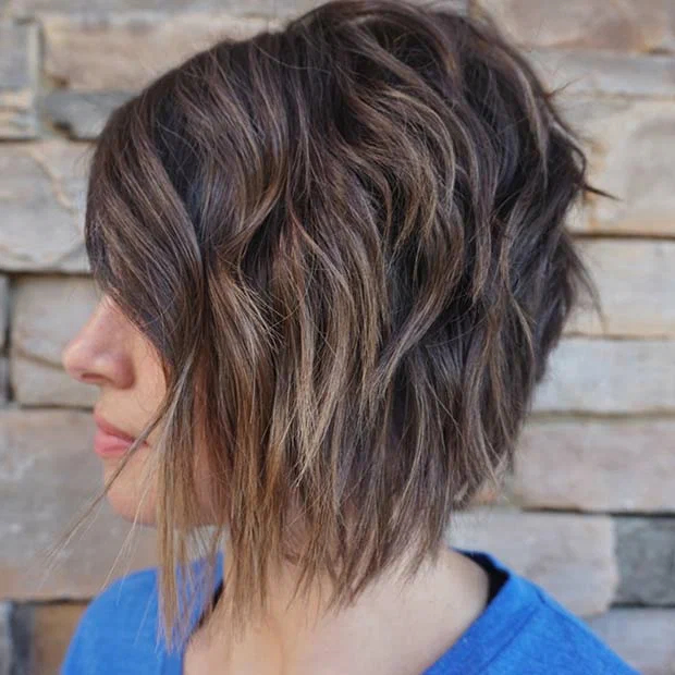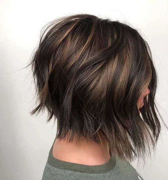 Актуальна та жіночна стрижка «каре-боб» з рваним ефектом гармонійно виглядає в одному тандемі з технікою фарбування «шатуш» благородного карамельного, медового, а також пісочного кольору. Тонкі світлі відблиски на темному полотні волосся створюють видимість густої шевелюри з ідеальним прикореневим об’ємом. Особливо цілісно і гармонійно подібного плану фарбування виглядає в одному тандемі з «рваними» стрижками середньої довжини.