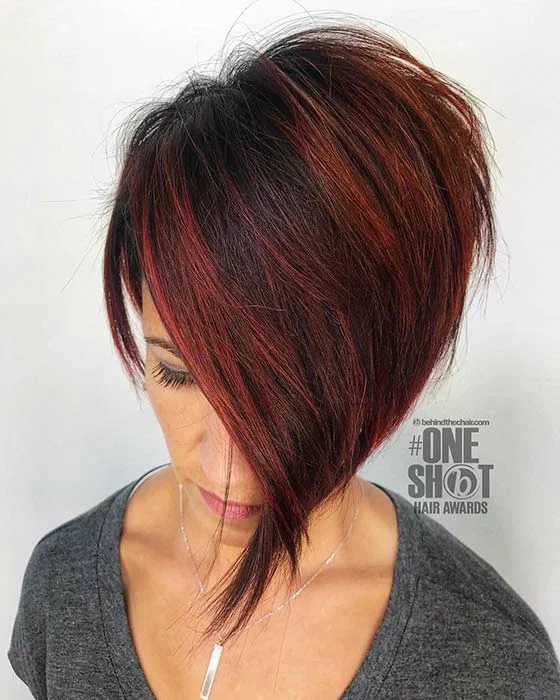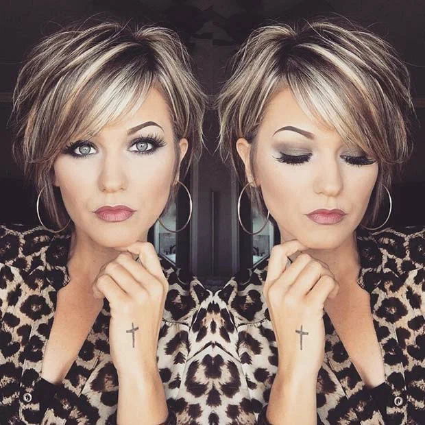 Двоколірне фарбування в строкатих відтінках на коротких стрижках піксі, боб, каре, а також паж виглядає стильно і ефектно. Якщо ви звикли до підвищеної уваги з боку оточуючих, вам варто звернути увагу саме на складне фарбування такого плану.
