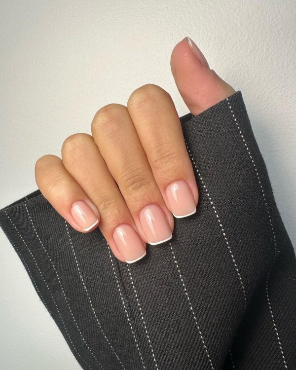 Шанувальникам мінімалізму точно сподобається мікрофренч. Основна його відмінність від звичного дизайну – дуже тонка смужка на кінчиках нігтів. Він ідеально підійде жінкам, які хочуть візуально подовжити нігті, але не бажають робити нарощування.