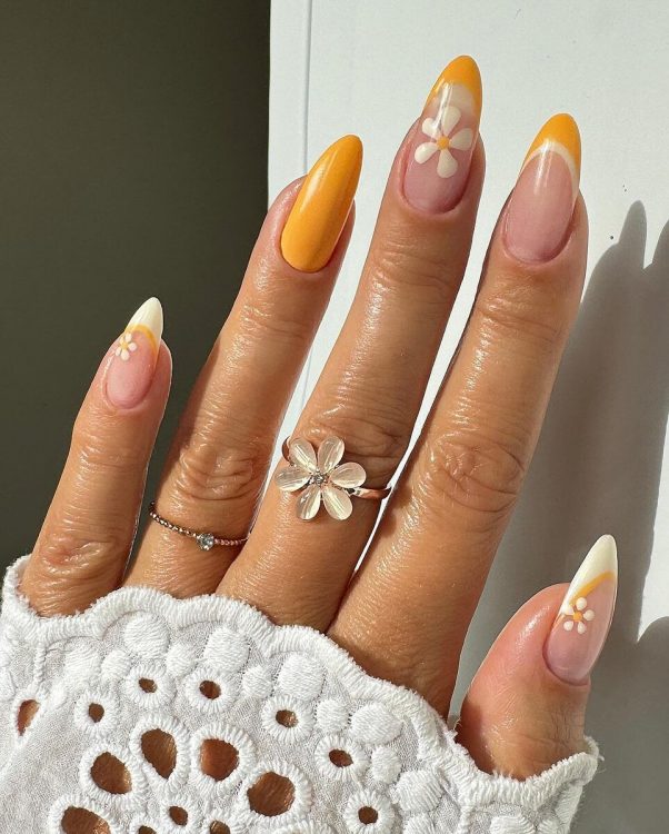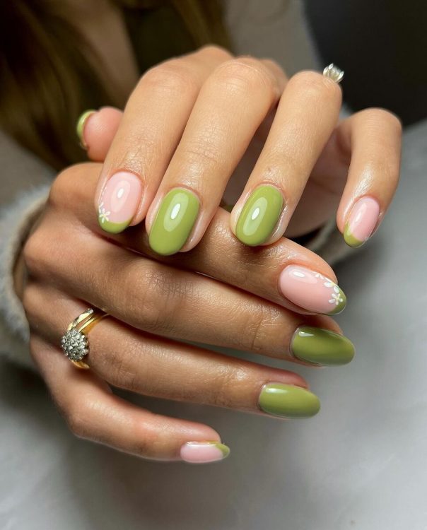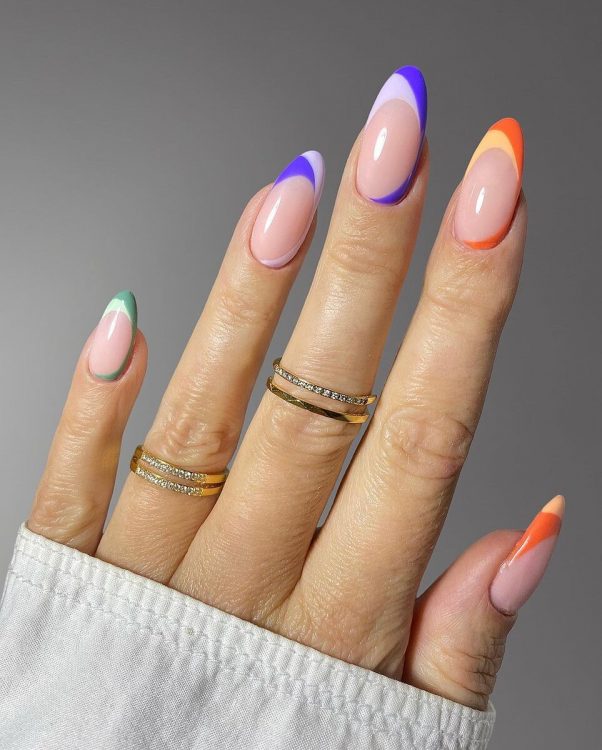 Варіант для тих, хто не може визначитися з улюбленим кольором цієї весни. Поєднуйте будь-які відтінки та дизайни: доповнюйте різнокольоровий класичний та «зворотний» френч ніжним квітковим дизайном.