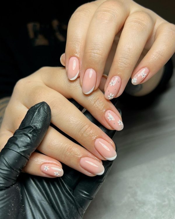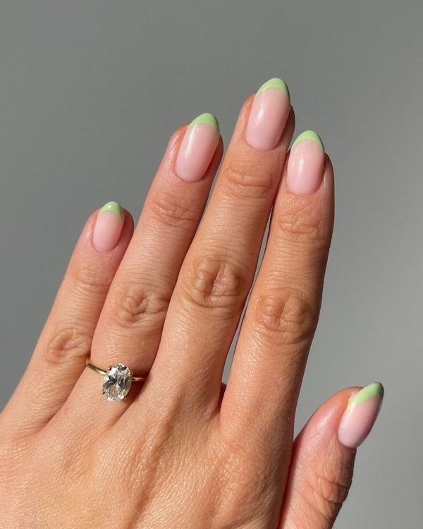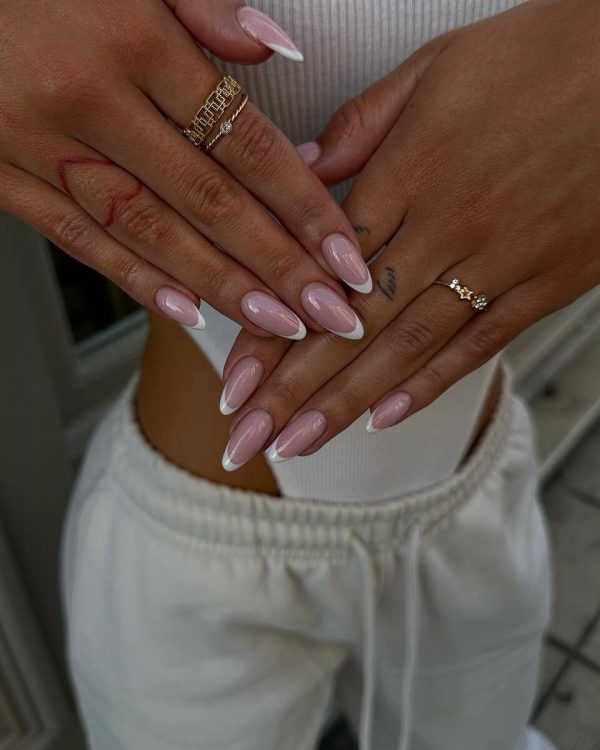 Ніжно-рожеве покриття та біла «дуга» — ще одне чудове поєднання на весну, яке додає романтичності образу. Щоб зробити покриття ефектнішим, завершіть манікюр глянцевим топом. Так ви отримаєте трендовий «глазурований» ефект.