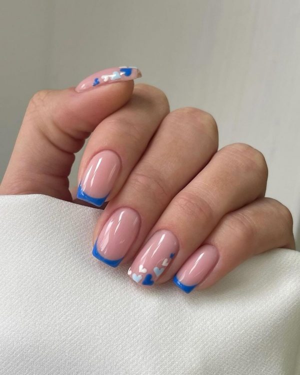 Манікюр з більш насиченим кольором, що виглядає свіжо. Можна залишити класичну «усмішку» або урізноманітнити дизайн малюнками, наприклад, серцем.