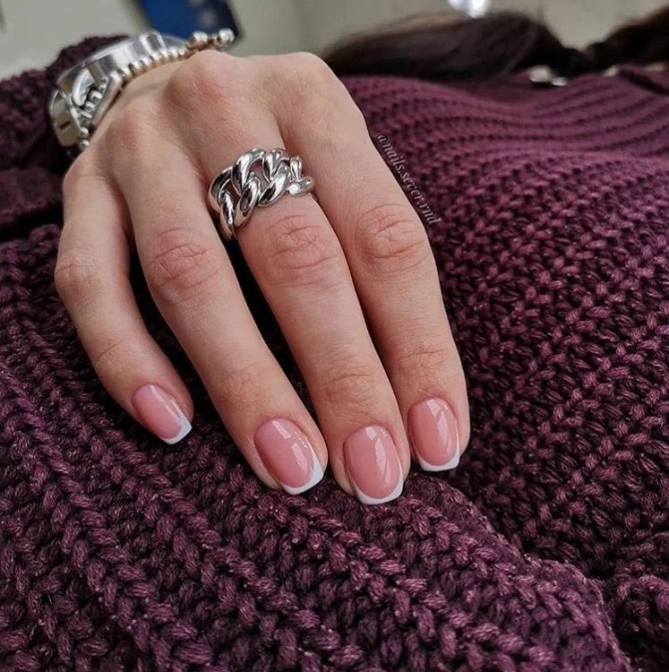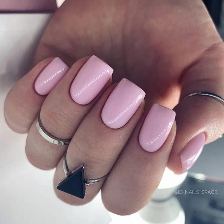 Ідеальний весняний манікюр для коротких нігтів – це однотонне покриття ніжно-рожевого відтінку із глянсовим топом. Відсутність будь-якого дизайну в манікюрі – черговий тренд цього сезону.