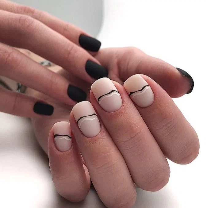 Мінімалістична чорно-біла абстракція виглядає ефектно та сучасно. Нейл-майстри радять завершити весняний манікюр матовим топом.