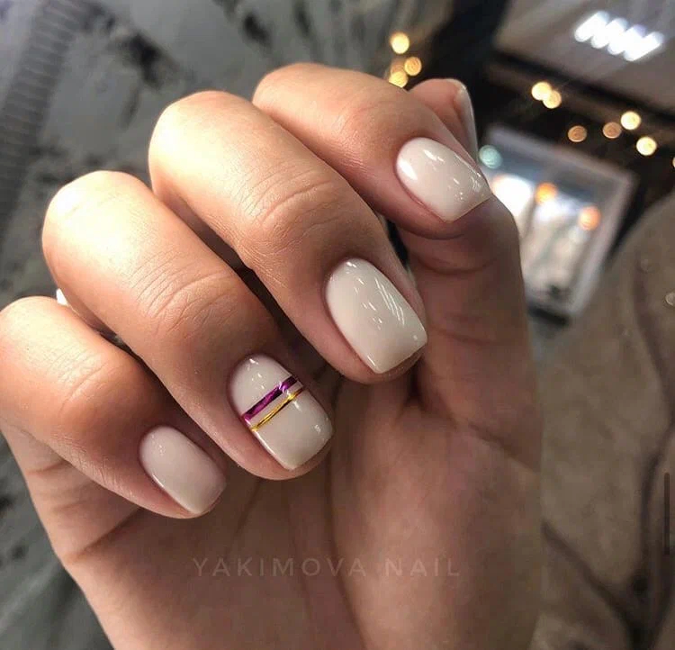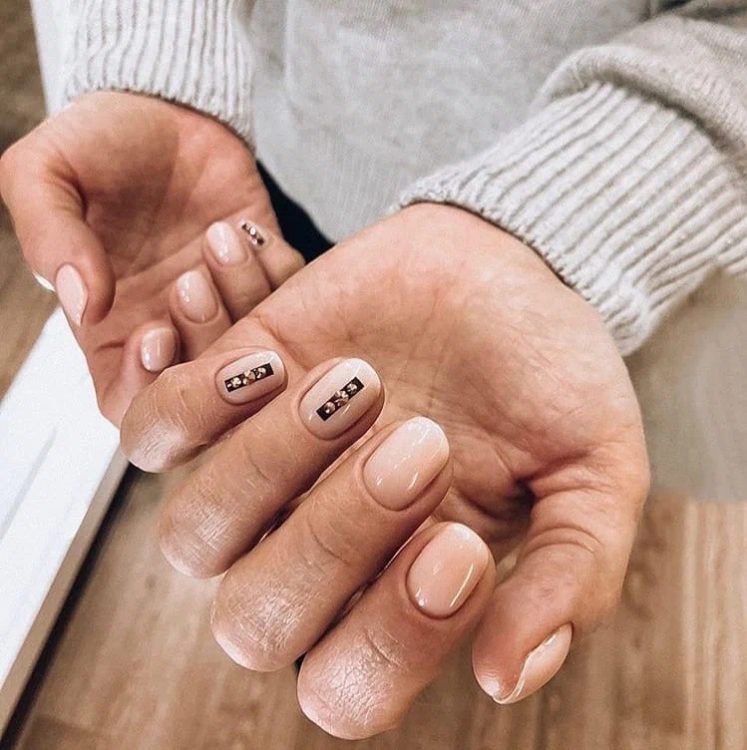 Нюд + мінімалістичний дизайн у стриманому чорному кольорі – безпрограшне поєднання на кожен день, яке ідеально підходить коротким нігтям.