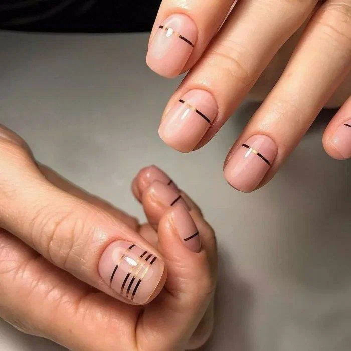 На короткі нігті рекомендується наносити горизонтальні лінії, щоб візуально подовжити нігтьову пластину. Якщо такий ефект вам не потрібний, можна намалювати і вертикальні смужки. Товщина, до речі, не має значення.