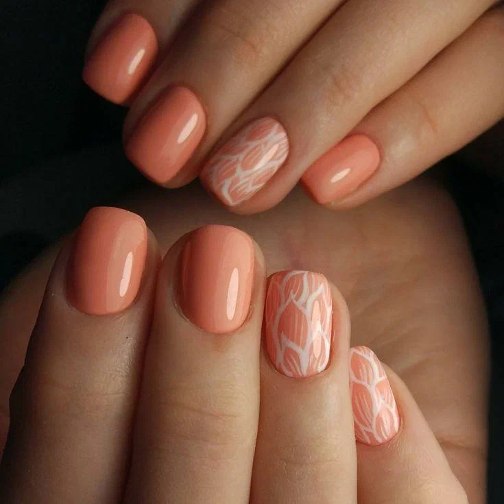 Теплі персикові відтінки дуже багатогранні і стоять десь між бежевим, рожевим і помаранчевим. Це ідеальний варіант на літо. Він не впадає у вічі, але нігті виглядають максимально натурально і доглянуто.