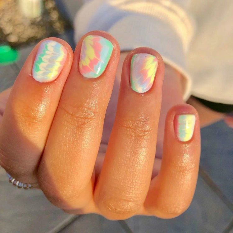 Це справжнє божевілля, буяння фарб. Яскравий, соковитий, оригінальний манікюр, схожий на кольорові розводи. Але це не означає, що покриття виглядає неакуратно. Малювати розводи можна за умови найвищої майстерності.