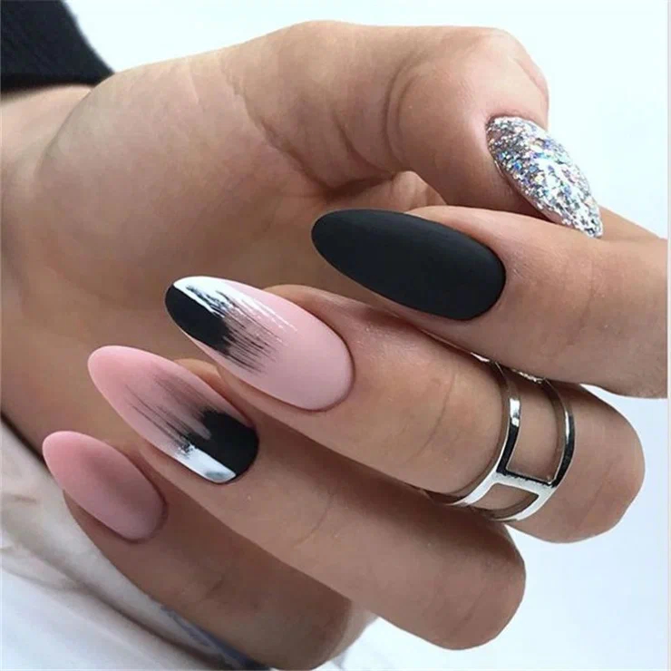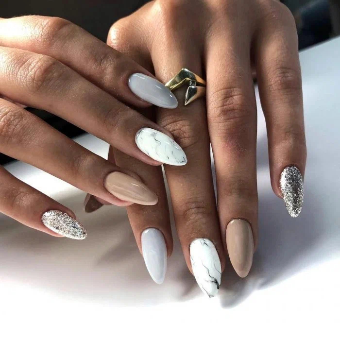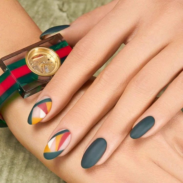 Тим, хто прагне бути цікавою, стильною та яскравою, варто спробувати цей дизайн нігтів. Тут присутні різні геометричні фігури та різноманітна гра відтінків.