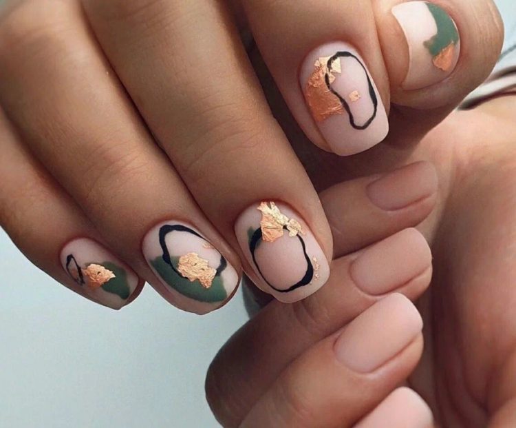 Хаотичні мазки акцентним кольором на нюдовому тлі виглядають дуже ефектно.