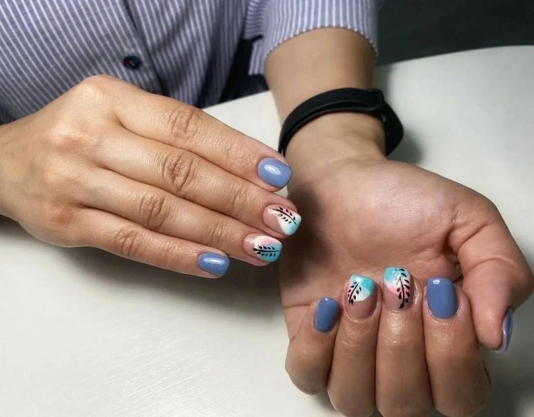 Прикрашати короткі нігтики, пофарбовані прозорим або нюдовим лаком, витонченими гілочками та ніжними листочками, вважається класикою.