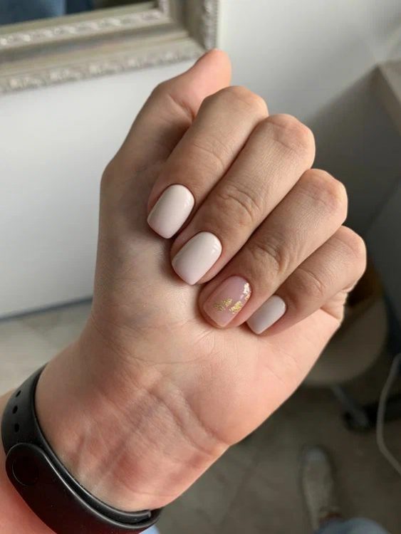 Молочна основа + нюд + золота фольга – об’єднайте ці три речі та отримайте в результаті шикарний манікюр, який на всі 100% відповідатиме сучасним вимогам.