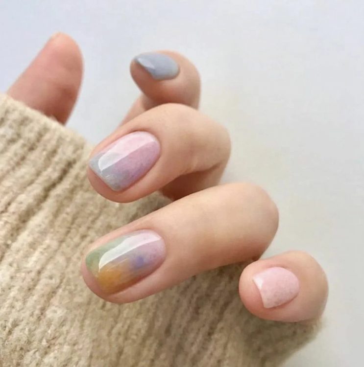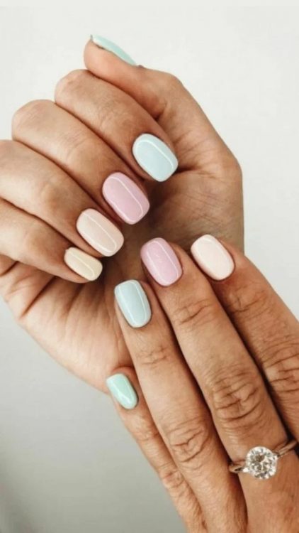 Пастельна гамма кольорів – ідеальний вибір для любительок мінімалістичного дизайну і короткої довжини нігтів.