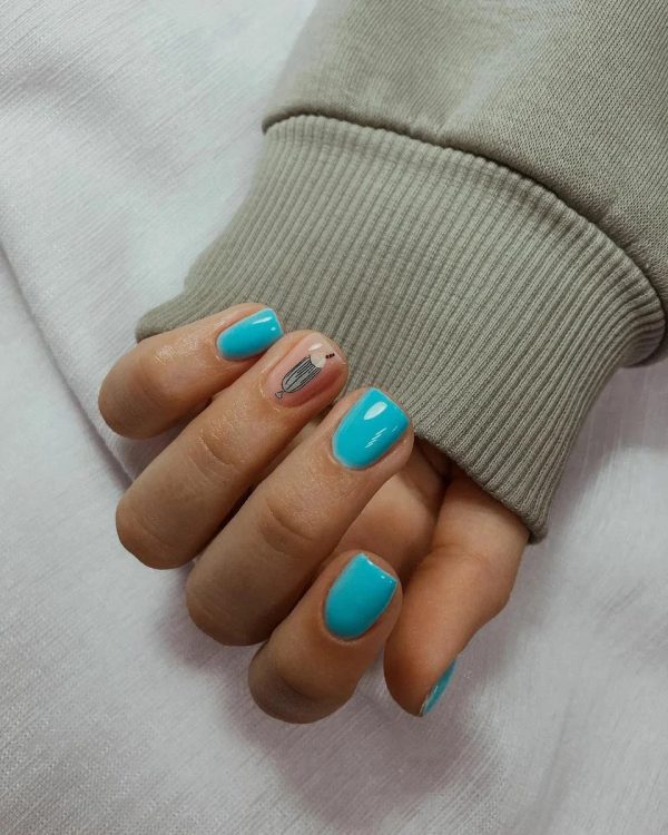 Манікюр у блакитних відтінках чудово виглядає на нігтях будь-якої довжини та форми. Особливо якщо він скомбінований з натуральним рожевим або нюдовим відтінком.
