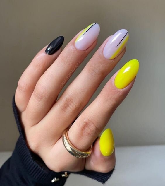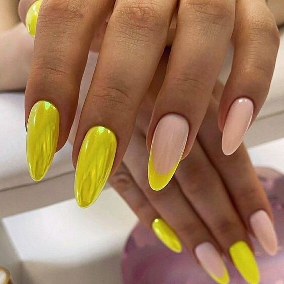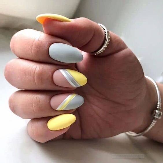 Стилісти пропонують в цьому сезоні придивитися до поєднання сірого та жовтого тонів. Це досить цікавий та незвичайний варіант покриття. Це ідеальне поєднання кольорів цього сезону. Сміливо вибирайте таку палітру і ви будете виглядати просто чарівно.
