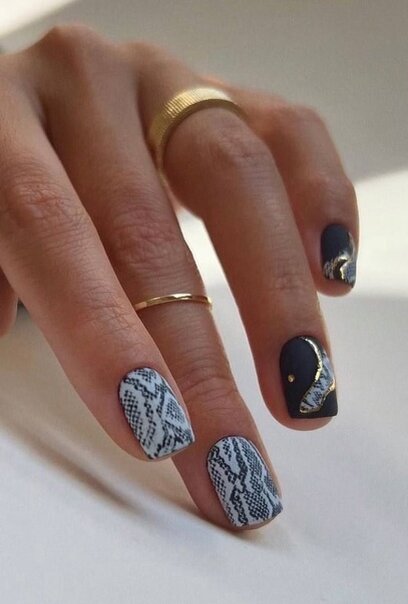 Абстракція – це лідер сезону 2023-2024 року серед малюнків на нігтях, яка з легкістю дозволяє поєднати в одному дизайні різні малюнки. Улюблена геометрія, тваринні принти, тематичні та сезонні малюнки, написи можуть гармонійно поєднуватись у модному абстрактному манікюрі восени та взимку. А доповнити стильний нейл-арт дизайн з абстракцією можна за допомогою фольги та блискіток.