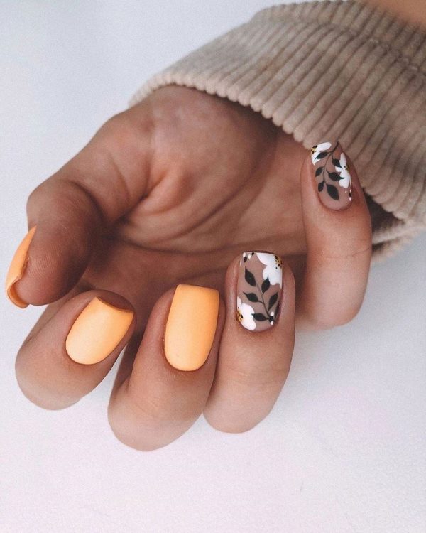 Квіти – це універсальний нейл-арт, який підійде під будь-який образ, надаючи йому нотки жіночності та ніжності. Восени та взимку 2023-2024 у тренді будуть квіти, виконані в акварельній техніці, а також фактурні квіткові візерунки, зроблені в техніці мазків. Флористичний манікюр осінь-зима не обов’язково має бути стриманим і спокійним, також привабливо виглядають малюнки квіток із застосуванням яскравих фарб.